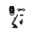 Package includes wireless charging phone mount, suction base for dash/window mounting, vent adapter, and instructions