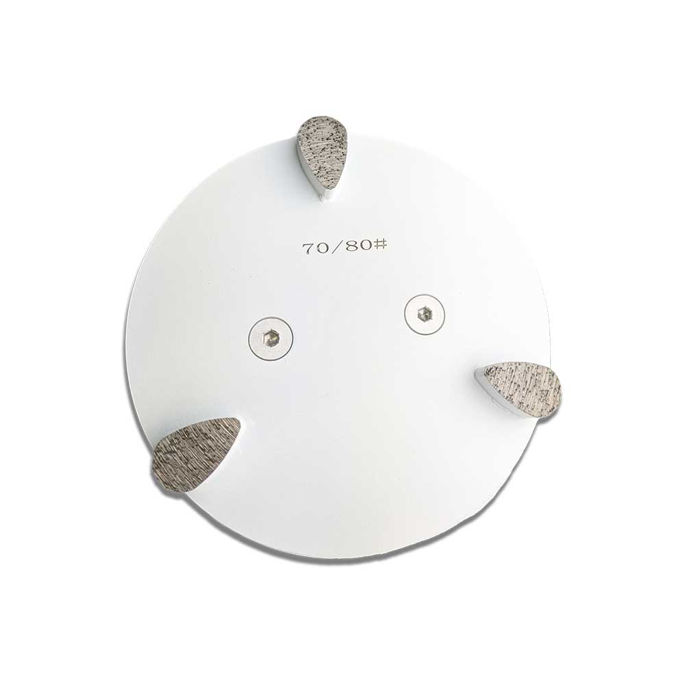The WerkMaster 5-In. 3 segment 70/80 grit teardrop tooling handles a range of grinding needs with the Boss 4-In-1 Ultra Floor System. This rental-friendly tooling attaches to the Boss’ toolheads, and has a medium bond for most types of concrete with Mohs 4.5-7.5 hardness. This versatile tooling strips away paint, epoxy, sealers, and other coatings, and leaves minimal tooling marks on the floor. This tooling uses a polycrystalline diamond abrasive, which will hold up for a lifespan finishing up to 18,000 Sq. Ft.