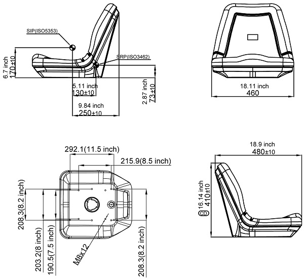 Seat dimensions: 18.11 in. x 16.4 in. (W x H)