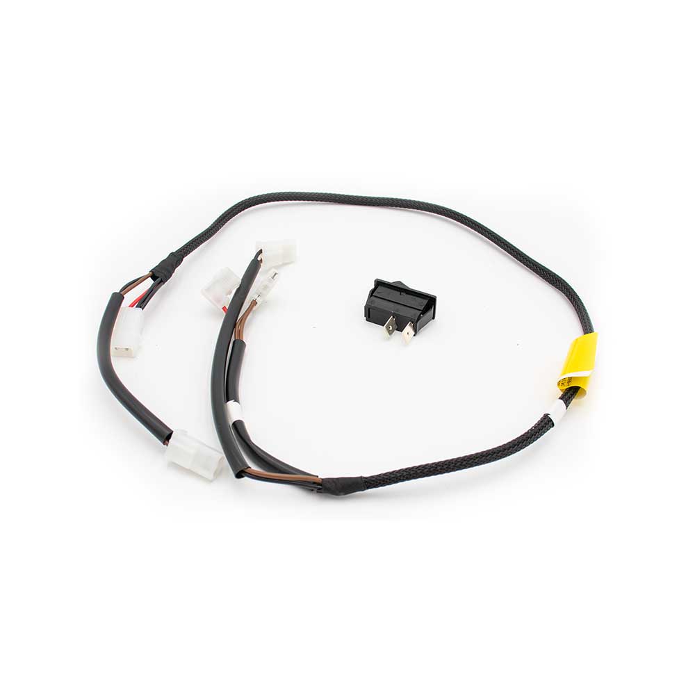 Kit includes wiring harness, rocker switch, hardware, and zipties for cable management