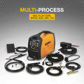 - What's Included: (1) Multi-process welder (1) MIG torch(1) Spool gun(1) TIG torch with extra collets (1) Electrode cable/holder (1) Ground cable/clamp (1) Gas hose (1) Dual gauge regulator (1) Flux core nozzle(1) MIG nozzle (2) Contact tips(1) 120V power cord adapter(1) Foot pedal