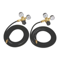 - Includes 10ft. ground clamp and cable, 10ft. MIG torch, 13ft. lift start TIG torch, 2 dual gauge regulators and 2 gas hoses