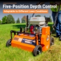 Five-position depth control allows for precision control over the dethatching process, adaptable to different lawn conditions and needs