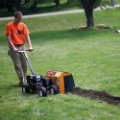 The Brave 7-in. mini trencher is lightweight, maneuverable, and designed for ease of operation — perfect for homeowners or landscapers. The 7-in. max depth allows for a variety of uses: burying cable or pipes, pruning roots, removing stumps, garden edging, defining landscape beds, and more. Easy-change rotors are available to meet your needs.