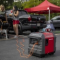 This Honda EU3000is Portable Inverter Generator produces up to 3000 watts to power your furnace, fridge, microwave, most 13,500 BTU RV AC units and more. Plus, it is ultra quiet with a 50dB noise level @ 1/4 load — quieter than normal conversation. It features CO Minder for essential protection from harmful carbon monoxide and covered outlets protect against the elements. Not for sale in California.