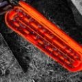 The orange Chain Locker Pro Series storage case is simple and versatile solution for organizing and storing multiple chainsaw chains up to 36 In. long. This case features two rows for storing chains, with tabs to perfectly fit chains of nearly any length, and thickness up to .404 pitch. Even long chains are easily secured using the crescent shaped tabs on either end to make a tidy loop for secure storage. With its two-inch depth, the Chain Locker can stack multiple chains, and even store tools like t-wrenches and files. The Chain Locker is also proudly made in the USA, and built tough with UV enhanced polypropylene, and stainless steel pins on the hinges and latches.