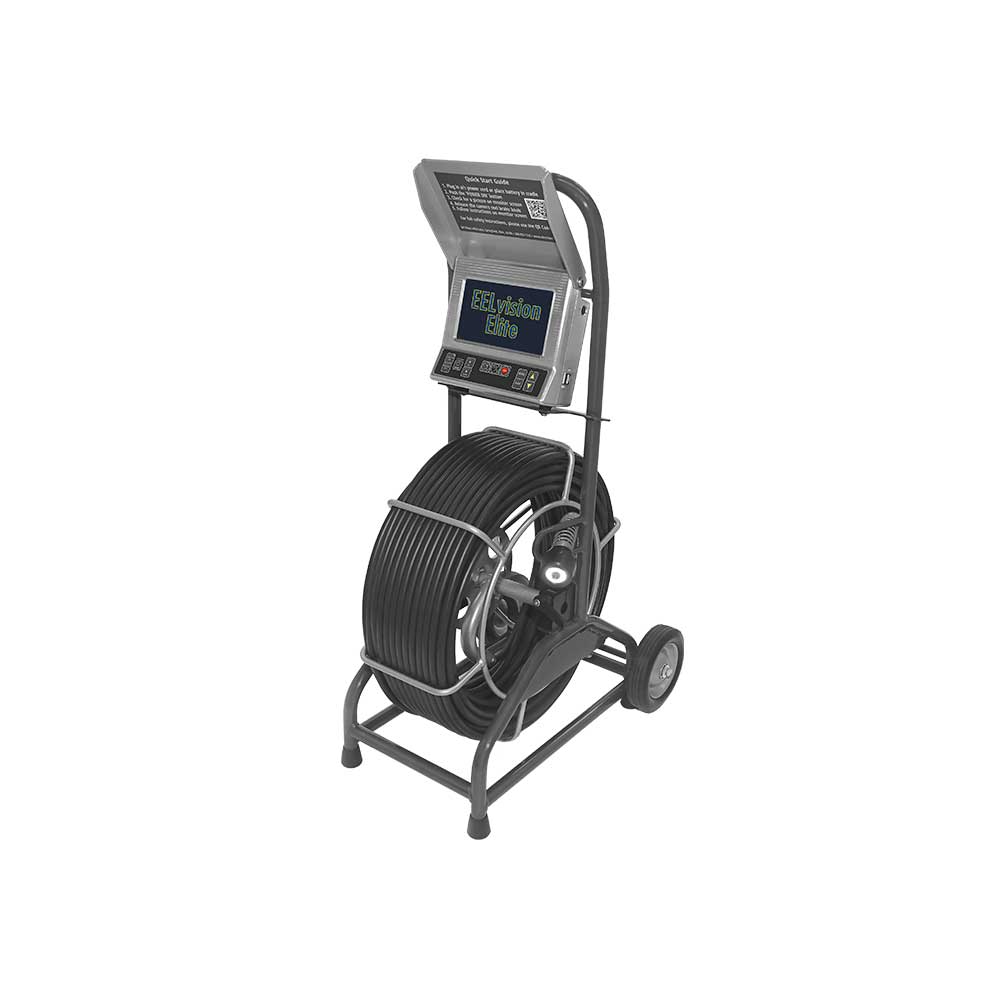 The EELvision ELITE inspection camera has a 1.3 in. diameter self-leveling color camera, connected to 200 ft. of push rod to inspect pipelines. This inspection camera features a 7 in. monitor, with footage counter and continuous display odometer for tracking pipeline issues. The ELITE also features one touch recording and screen shots, which are saved to a standard USB drive. The EELvision ELITE also has a built-in, always-on sonde to assist in physically locating pipeline issues. This camera can be powered using the included AC adapter, or standard 18V Makita batteries. It can also accept DeWalt and Milwaukee batteries with the included adapter.
