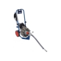 The Electric Eel Model Z5 drain machine is designed to clean 1-1/4 in. to 3 in. lines up to 75 ft. long. This auto-feed version of the Model Z5 allows the operator to advance and retrieve cable with the push of a lever, and keeps hands off the rotating cable for safety. This machine is great for rentals, and includes a ½ in. by 75 ft. cable, plus five essential tools for tackling many drain clearing jobs. The cable can be stored on the machine in the epoxy-coated cage, which minimizes corrosion from drain cleaning elements. The machine is powered by a 1/3 HP Baldor electric motor, and has a 20 ft. cord equipped with GFCI to protect the operator. This drain machine has 10 in. wheels and a foldable top handle for ease of transport and storage.