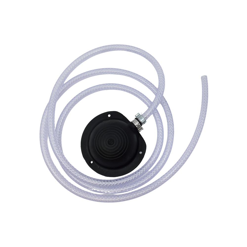 The Electric Eel foot pedal and hose replaces the foot pedal on Electric Eel Model R, Z5, and E drain machines. This foot pedal uses air pressure to control the machine, protecting the operator from electrical shock. Having this part on hand will ensure uptime for the drain machine in case of damage.