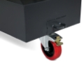 Large solid rubber tires with rear locking caster for ease of maneuverability