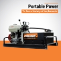 Electric start, portable power to run power conveyors, augers, lifts, hydraulic motors, and other implements