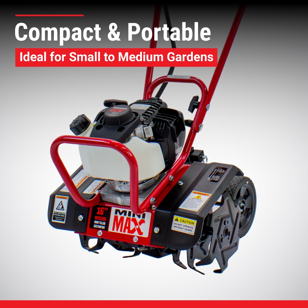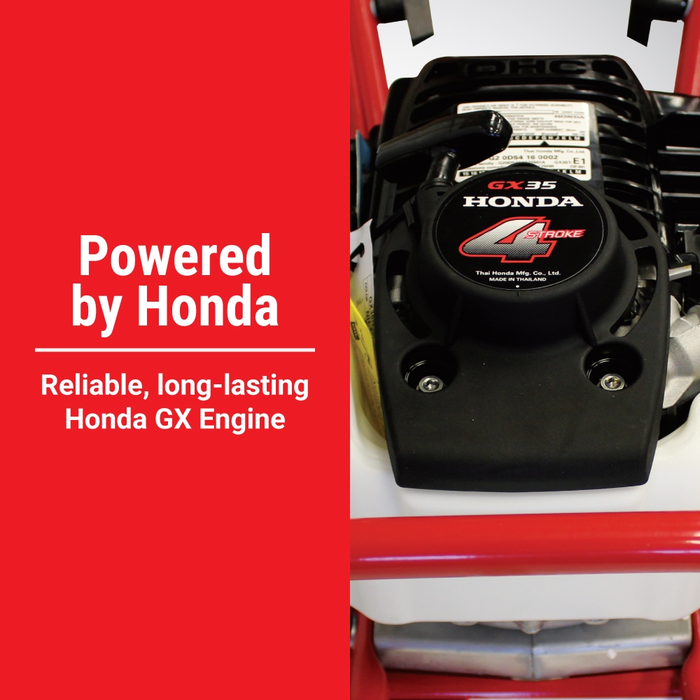Powered by a reliable 4-cycle Honda GX35 engine delivering up to 35 cc, this tiller is ideal for small- to medium-sized professional and homeowner gardens.