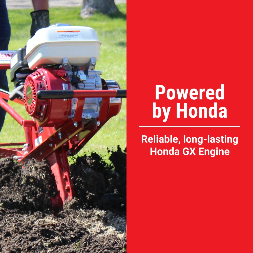 Powered by a reliable, long-lasting Honda GX160 engine delivering up to 163 cc, this commercial tiller provides power and durability for the toughest rental markets and heavy daily professional use.