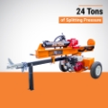 This Brave 24-ton log splitter delivers ultimate splitting force, in a strong, well-balanced log splitter. Featuring a reliable Honda GX engine, you can easily split thick green logs with 24 tons of splitting pressure. This model offers commercial-grade features at a lower cost.