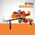 The Brave 30-ton log splitter allows you to split vertically and horizontally. Easily split thick green logs with 30 tons of splitting pressure — ideal for professionals or homeowners who rely on their splitters often. With a reliable Honda GX engine, standard log cradle, log dislodger, and convenient ball hitch, this splitter gives you more bells and whistles for less cost than a rental-grade splitter.