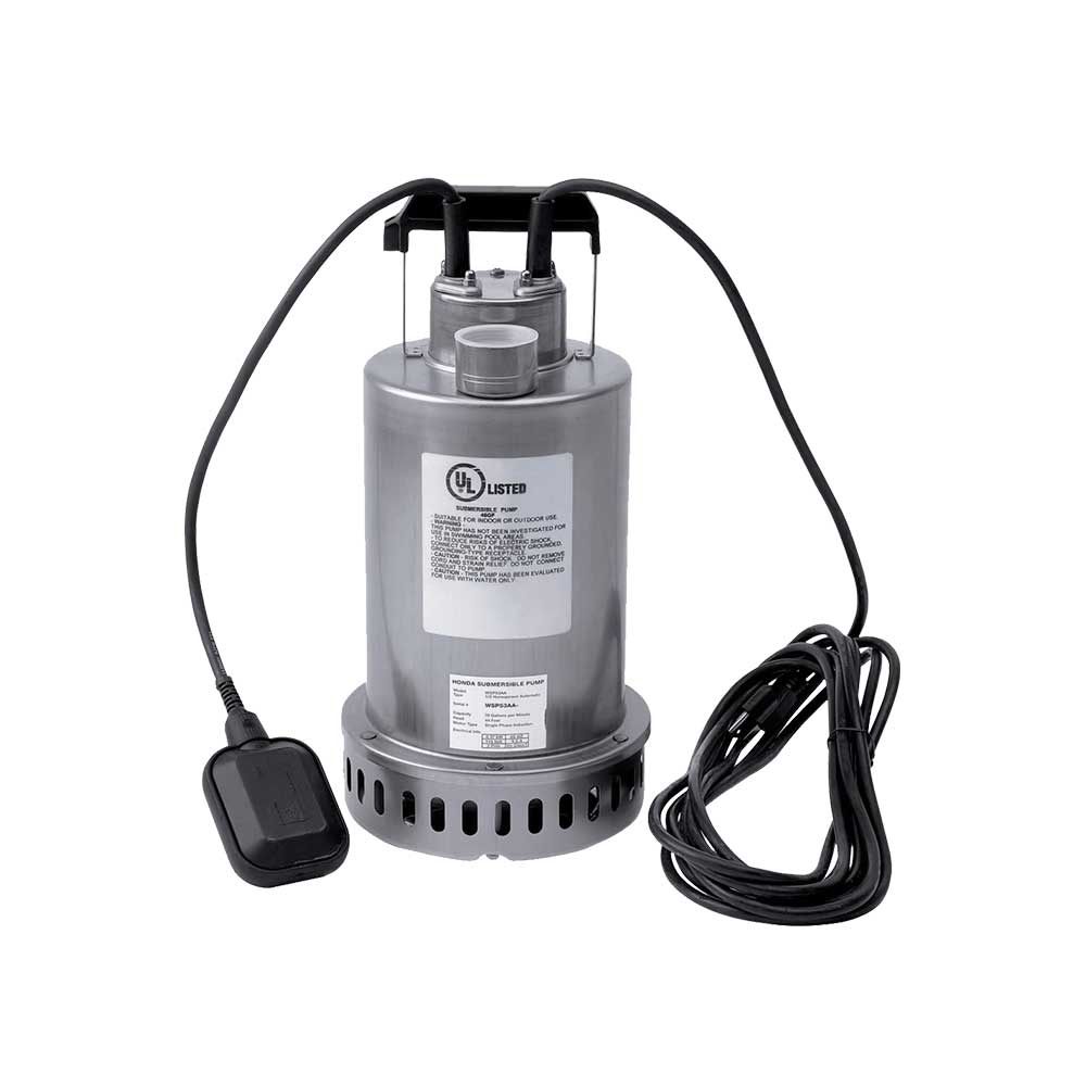 This Honda Submersible Water Pump is rated for continuous-duty use when fully submerged. Great for draining basements, window wells, garden irrigation, decorative fountains and more. Air-cooled automatic start motor eliminates the possibility of oil leaking into the sump.